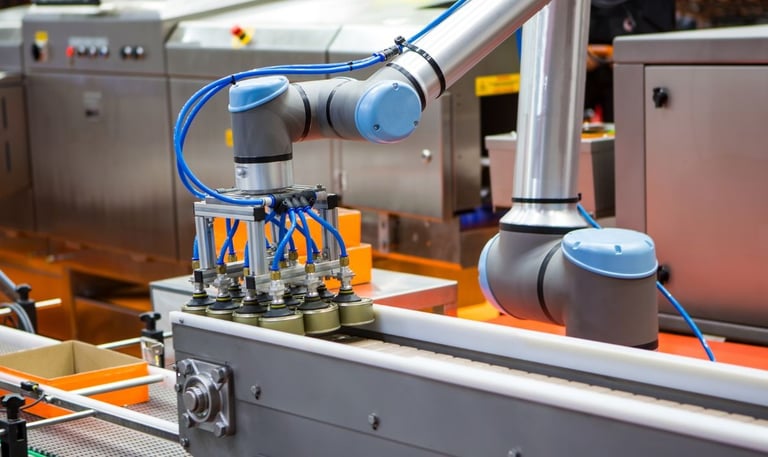 Projetos voltados para automação no processo de paletização, envolvendo robótica colaborativa e integração com outros equipamentos externos.